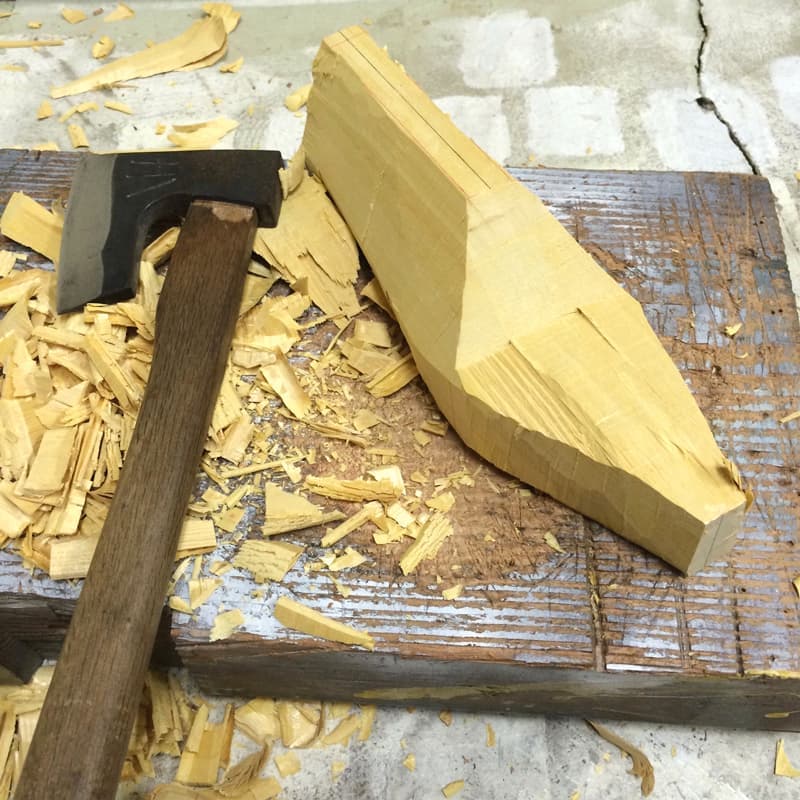 そこで、自分で作れば見た目も履き心地も自分に合った靴が作れるんじゃないかと思いました。自宅にあった廃材を鉈(なた)、グラインダーなどを使って木型にし、使わなくなった鞄を解いて材料にし、アッパーも靴底も手縫いで初めての靴を作りました。その靴は自分好みの見た目と履き心地でした。